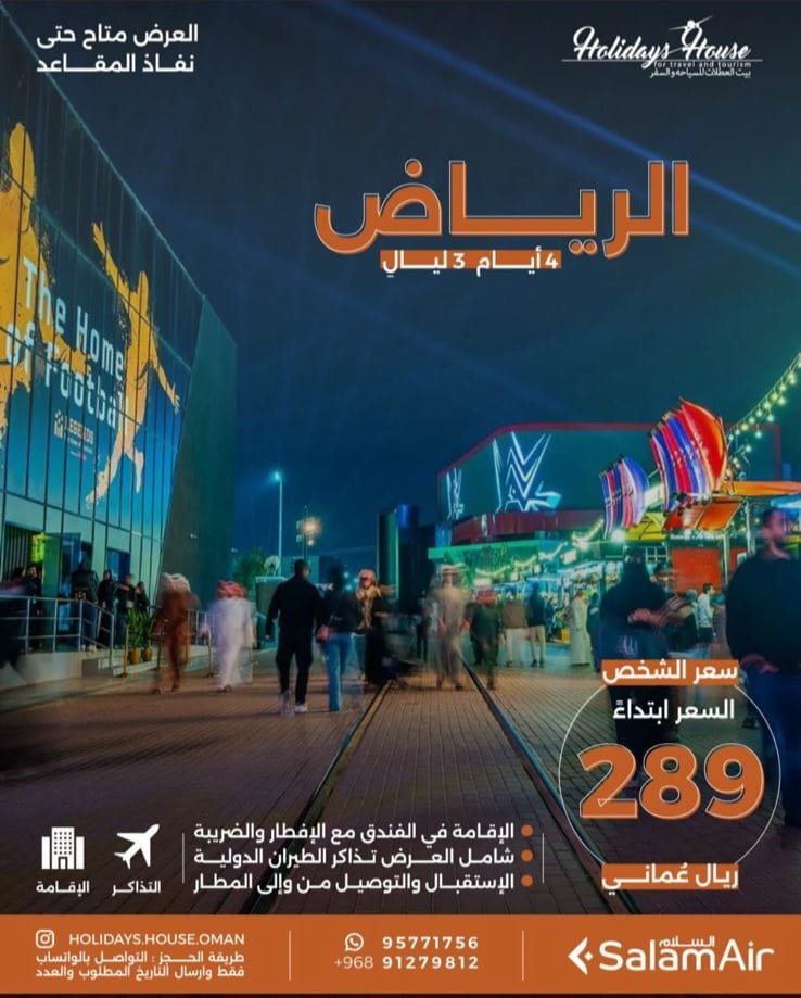 سعر الشخص ابتداءً من 289 ريال عماني
