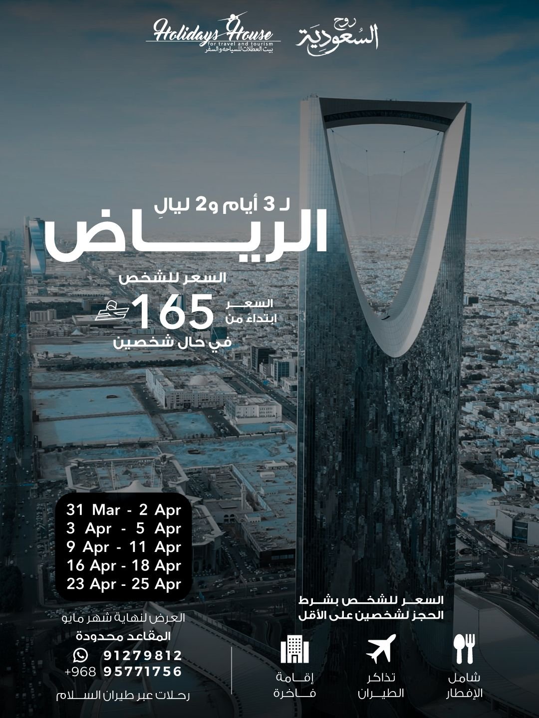 سعر الشخص ابتداءً من 165 ريال عماني بشرط ان يكون شخصين على الاقل